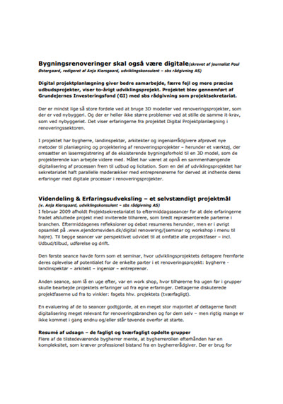 Let adgang til bygningsdata med projektweb, 3D-tegninger med klikbare objekter og anvendelsen af data om bygningen gennem dens drift og administration er elementer i drømmen om det digitale byggeri. Begynd din orientering om emnet her.