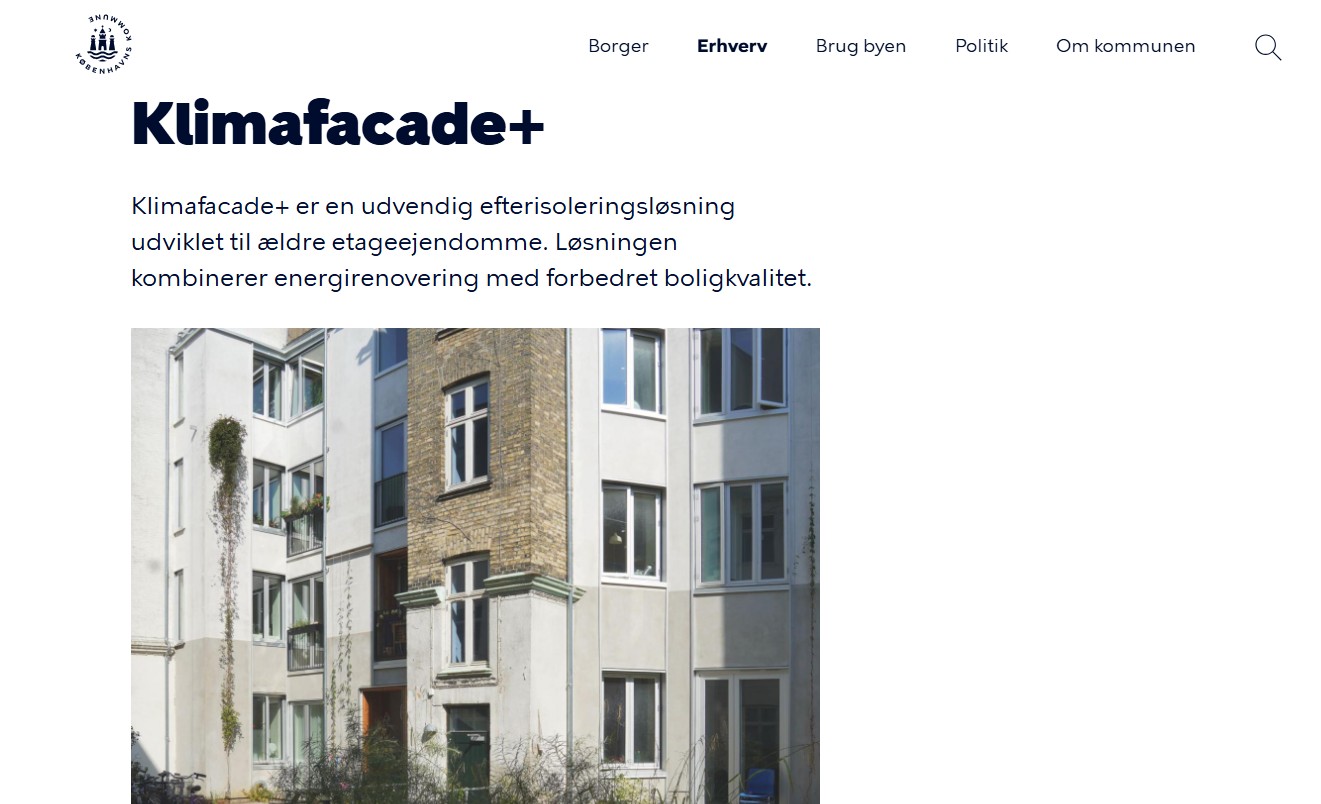 Klimafacade+ er en udvendig efterisoleringsløsning udviklet til ældre etageejendomme. Løsningen kombinerer energirenovering med forbedret boligkvalitet.