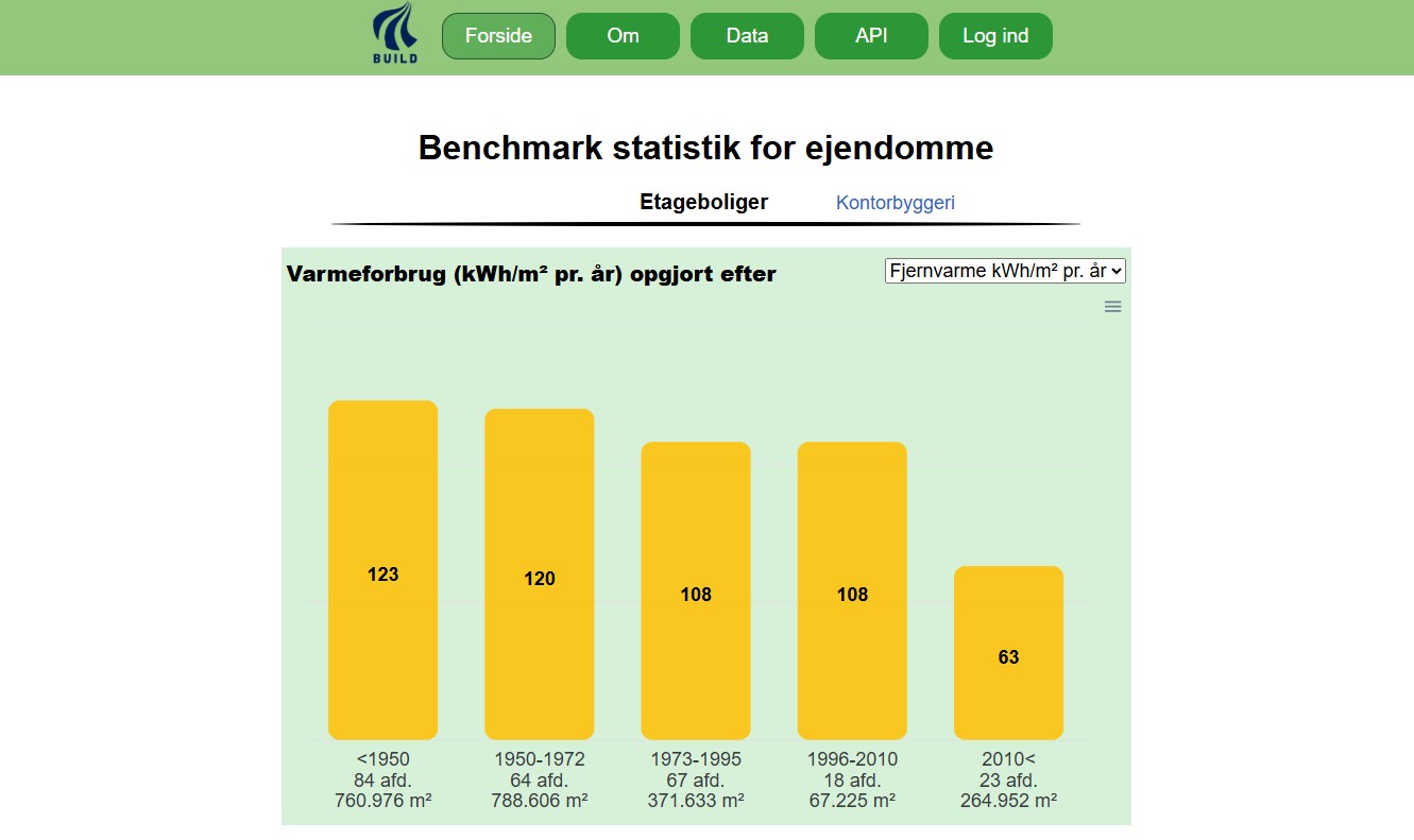 Statistikken er baseret på: 268 afdelinger med etageboligbyggeri (kode 140) med et samlet opvarmet areal på 2.326.134 m². 12 kontorbyggerier (kode 321) med et samlet opvarmet areal på 149.235 m².