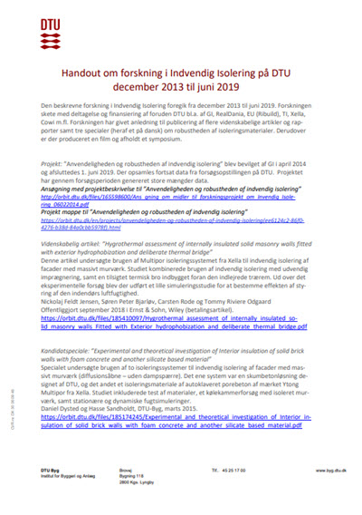 Viden og erfaringer fra danske projekter om hvordan bevaringsværdige, murede ydervægge energirenoveres med indvendig efterisolering på en fugtteknisk forsvarlig måde.