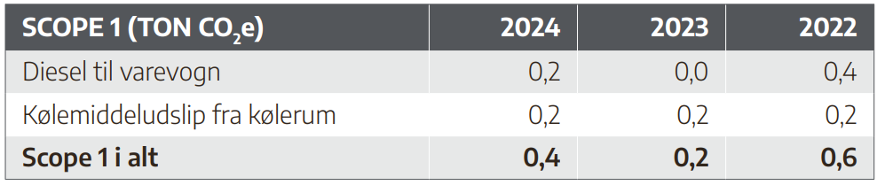 Scope 1 omhandler direkte udledning vedrørende faciliteter/bygninger og transportmidler, som for GI er udledning via firmabil og kølemidler fra køleanlæg.