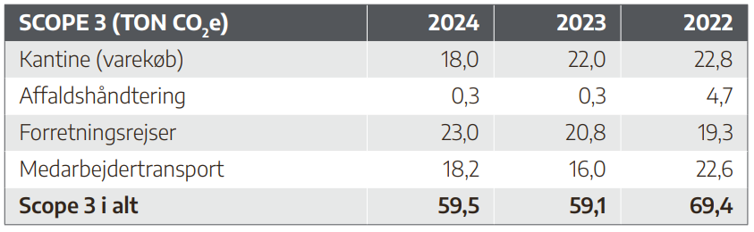 Scope 3 omhandler indirekte udledning fra alle aktiviteter, som kan relateres til GI’s drift. GI har valgt at rapportere på udslip fra råvarekøb (kantine), medarbejdertransport,