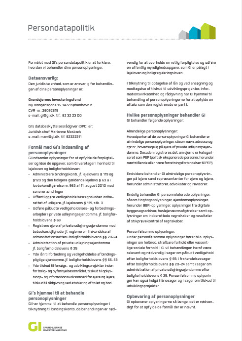 Formålet med GI’s persondatapolitik er at forklare, hvordan vi behandler dine personoplysninger.
